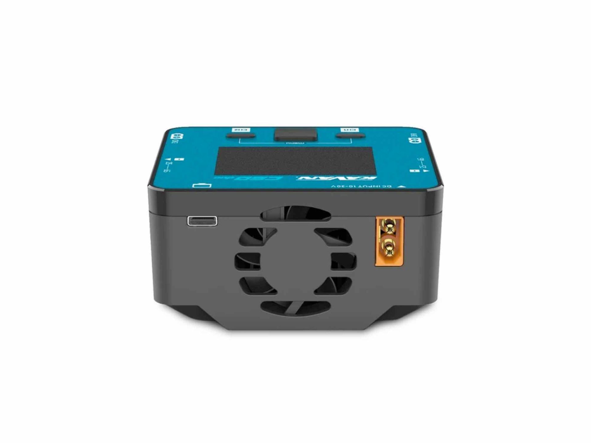 Das KAVAN C50 Duo 2x250W Palm-Size Ladegerät ist ein intelligentes Zweikanal-Ladegerät welches von einer Autobatterie oder einem stabilisiertem Netzteil versorgt wird. Es besitzt eine sehr einfache und intuitive Bedienung. Das C50 Duo kann die folgenden gängigen Zelltypen ( NiCd , NiMH , LiPo , LiHV , ULiHV , Li - Ion , LiFe , Pb ) laden. Ein Plus ist der eingebaute Sechskanal – Balancer, um zu gewährleisten, dass auch Lithium- Akkus sicher geladen werden können. Das Ladegerät ist mit einem Farb - LCD ausgestattet und besitzt Tasten zur Programmierung. Diese ermöglichen ein sehr komfortables und übersichtliches programmieren des Laders und seiner Einstellungen.